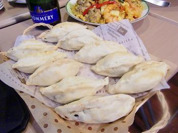 こちらはペルー料理です。なんとパン生地の中にぶどうと黒オリーブの詰め物が入っているのですが、これが私好みのなかなかの味でした!手の込んだものを作って下さってありがとうございます。
