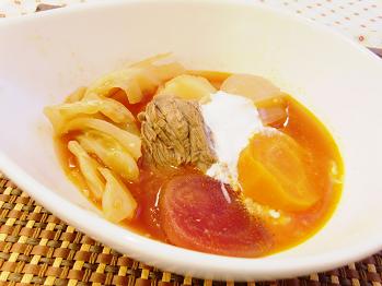 北国のスープだけあって体が芯から温まるこの季節ぴったりのスープです。仕上げにサワークリームを落としてクリーミーにいただきます。