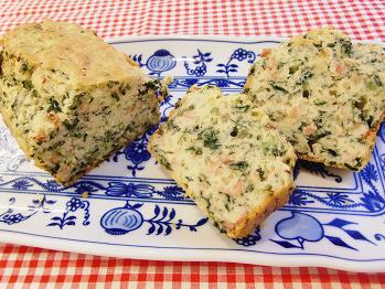 3品目はランチにぴったりの塩味ケーキほうれん草のケークサレです。砂糖を入れない塩味のケーキはさながらキッシュのような食べ応えのある食感があります。