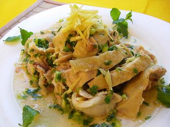写真を見ると分かると思いますが普通のゆで鶏より汁気の多い本格的な作り方を紹介します。ポイントは高温の油を使った調理法ですが、これでぐっと味が締まります。シンプルですがどなたにもよろこばれるおすすめの一品です。