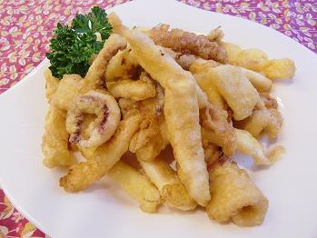 2品目はいかのフリットガーリック風味です。ガーリックをきかせた今回のフリットのポイントは揚げる前の下処理の漬け汁です。