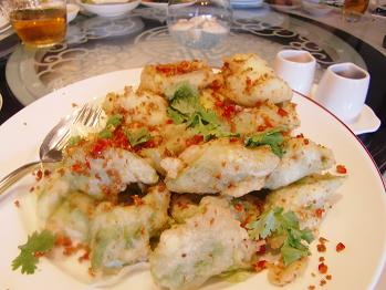 そしてシンプルながら料理人の腕が試される空芯菜の炒め物です。いつもながら龍天門でいただくシンプルな炒め物の繊細な火の通し方には本当に関心してしまいます。