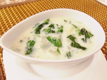 バジルは強壮作用がありますし豆乳を使用しますからとってもヘルシーなスープです。豆乳くささは一切感じさせない調理法で豆乳を自然に洋風スープとしていただける一品です。