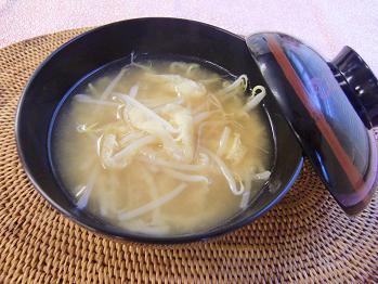 3品目はもやしと油揚げのお味噌汁です。