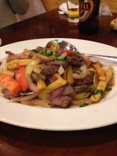 牛肉、フレンチフライ、玉ねぎ、トマト