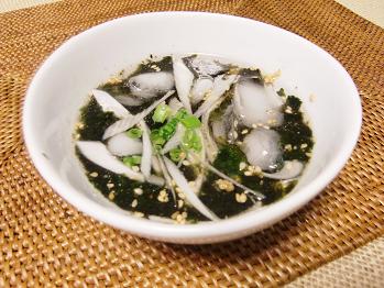 夏になるとお味噌汁やお吸い物がのどを通る時の熱い食感に正直そこまで美味しさを感じないという方も多いと思いますが、そんな時にぜひ試していただきたいのがこのスープです。外から帰ってきて汗ばんでいる時に氷を浮かべた冷たいスープを飲むと本当に胃も体も爽快になります。