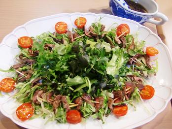 セリとわかめ、ローストビーフを使ったサラダです。忙しければ出来合いのローストビーフを使っても作れる便利レシピです。