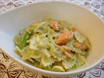 3品目は豆乳を使ったサーモンとブロッコリーのパスタです。クリーミーな豆乳と相性の良いサーモンとブロッコリーを使ったヘルシーなパスタレシピです。季節を問わず1年中素材を変えてチャレンジしていただきたいパスタレシピです。