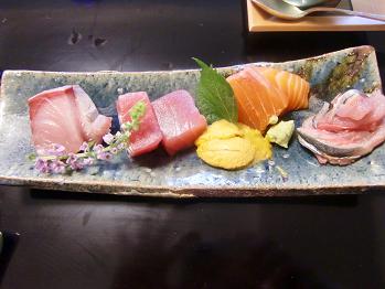 造り 天然鰤、鮪、サーモン、函館産うに、秋刀魚と穂紫蘇