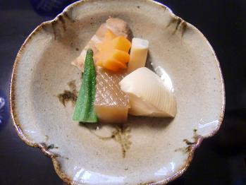 蛇腹蒟蒻(じゃばらこんにゃく)、人参、竹の子、オクラ