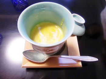 とってもきれいで撮影してしまったのがアミューズ(メニューにはなく、箸休めとでも言う感じで出されるものです。)のさつまいものスープです。