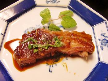 骨付きラム肉のステーキ自家製タレとミント