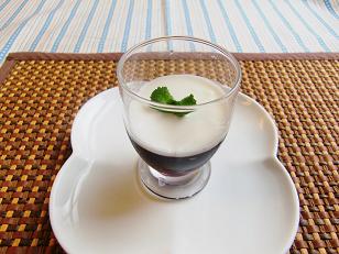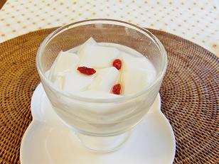 デザートはやわらか杏仁豆腐です。沢山作って冷蔵庫に入れて何回もいただきたくなる味です。ポイントは