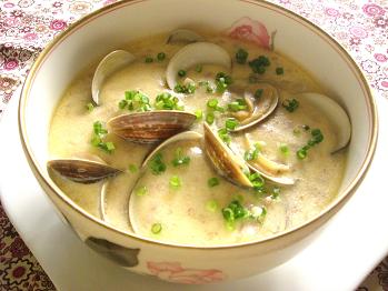中華風の茶碗蒸しは大きな丼を使って作るとても中華らしい豪快なスタイルのものです。ぜひご家族や友人とワイワイと楽しみながらいただいて下さい。酒蒸ししたはまぐりの出し汁がたっぷり出た一品です。