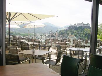 この日お昼をいただいたレストランはザルツブルグのお城を正面に見渡す素晴らしいロケーションでしたが、