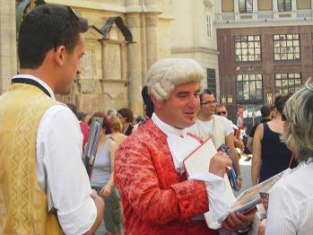 音楽の都という名もありますから、観光業に人はこんな装いをする人もちらほらと。暑い中、本当にお疲れ様です。