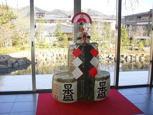 元旦の朝、ホテルのロビーには酒樽と鏡餅そして巨大な昆布がありました。私の身長弱はあろうかという昆布です。。。