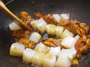 煮込んでいきます。炒めと煮込みの二重のプロセスがあるお料理です。