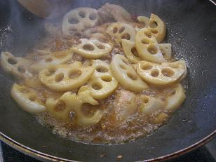 炒め合わせた豚肉・蓮根に合わせ調味料を加えて。。。