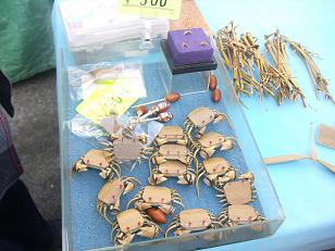 かわいらしい竹の蟹さんもいました。写真では分かりにくいですが紫の箱の上には爪くらいの大きさしかない子ガニがいます。かなり熟練した職人さんなのかもしれません。