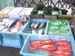 採れたての朝上がったばかりの魚が並びます。きんめの鮮やかな赤が鮮度の良さを物語っています。