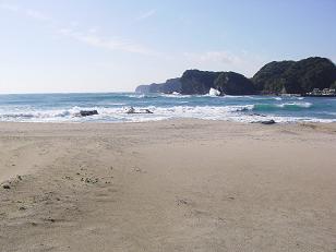 漁港から車で移動し、しばらくすると静かな砂浜にたどり着きました。守谷海岸という所だそうです。打ち寄せる波の音に心もおだやかになります。