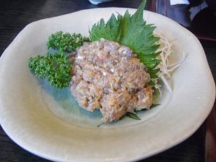 帰路につく途中せっかくここまで来たのだから新鮮な海の幸をいただこうと言う事で気取らない港の普通のお店に入りました。アジのたたきをお味噌であえた「なめろう」です。