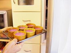 「紫芋のヨーグルトムース」です。材料に豆乳とヨーグルトを使っているのでとってもヘルシーです。