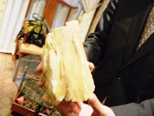 これはご自慢の「木の化石」だそうです!大変貴重なものだそうで、親切に手にとって撮影させていただきました。