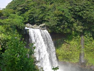 こちらは「音止の滝」です。「白糸の滝」とは打って変わって雄々しい勇壮な滝です。