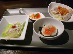 まず前菜のベトナム風生春巻きです。香菜・ミント・海老・鶏挽き肉などを巻き込んで砕いたピーナッツを入れたスイートチリソースでいただきます。ミントを入れたのですっきりした味わいになりました。