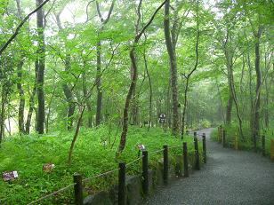そして今回もっとも行ってよかったと感じた「箱根湿生花園」(はこねしっせいかえん)です。少しばかり霧に煙った森の緑の色ってやさしくって気分も穏やかになり文字通り心が洗われますね。