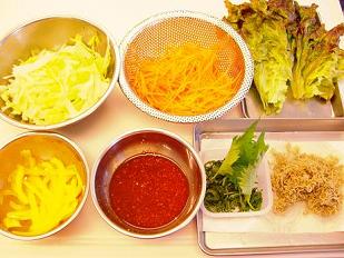 ・「きゃべつのさっぱりサラダ」(こちらもナンプラーを使ったタイ風です。ノンオイルでとってもヘルシー)