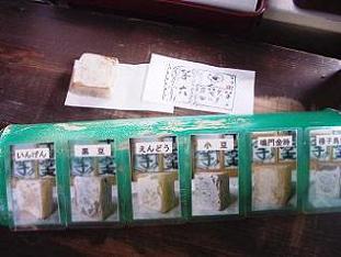 こちらがその「きんつば」。いんげん、黒豆、えんどう、あづきと各種あります。お散歩がてらにちょうどいい甘さに気分もなごやかになります。