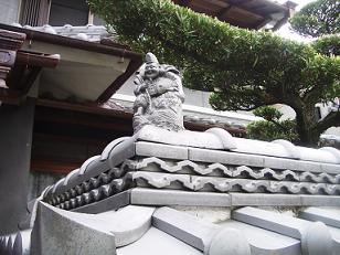 恵比寿さまの乗っかった屋根瓦を発見しました。かわいらしくおもわずパチリ。。。笑う門に福来るですかね?鬼瓦ではなく恵比寿瓦です。この地方の伝統でしょうか?それともこの家の方のセンスでしょうか?