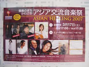 先日川崎市ではアジアン・フェスタが行われました。その一環としてミューザではアジアの様々なアーティストによるコンサートがあり音楽好きな私としては見逃せず行ってきました。「さとうきび畑」で有名な新垣勉、坂本龍一の娘坂本美雨、サントリー烏龍茶のCMソングで有名なアミン、奄美民謡の中孝介、「日本沈没」を久保田利伸プロデュースで歌ったソンミンなど多彩な顔ぶれです。私は新垣さんの歌声には心が洗われる思いがしてCDを購入してしまいました。