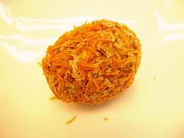 お教室では4月のチャイニーズコースでピータンを使った和え物を紹介します。ピータンをまだ食べた事がない方もいらっしゃると思います。ピータンとは中国のアヒルの卵もしくは鶏卵、うずらの卵を加工した食品です。(先日『鶏卵』とだけ書いていましたが訂正します。伝統的に一番有名なのはアヒルの卵のタイプですが最近では鶏卵タイプのものもけっこう市場に出回っているそうです。)卵の殻の上から石灰や木炭をまぶし溶液が入ったカメに入れて2~3ヶ月冷暗所で保存するとアルカリ成分によって熟成してこんな色合いに変わり、ちょっと個性的な香りがしますがコクのある味わいになり、一度食べると好きになる。そんな食材です。