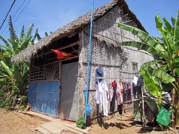 ミトーの家はこのようにバナナの葉でふかれています。