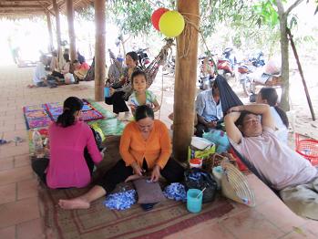 村の人々は手作業にはげんでいますが、中にはハンモックで寝る人も。ここにはゆっくりとした時間が流れています。