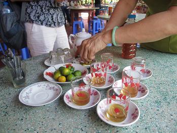 お茶請けもバナナのスナック、生姜と蓮の実の砂糖漬けなど、どれもベトナムらしいものばかり。