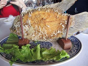 なんとも豪快に丸ごと揚げて出されました!味は白身もとても美味しい魚でしたよ。