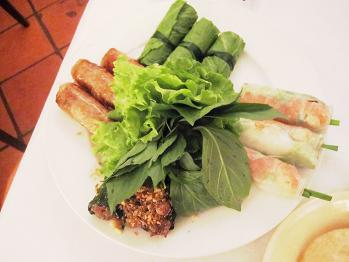 沢山のハーブとお野菜でいただく春巻きや