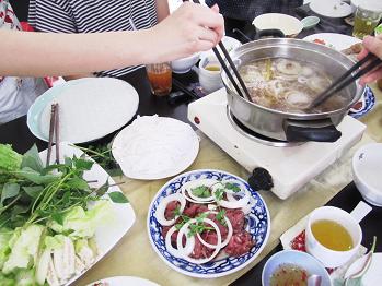 ベトナムの伝統料理、酢しゃぶです。お酢でお肉をしゃぶしゃぶのしていただく正直日本人の舌にはあわないお料理でした。