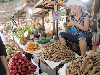 昼間、料理教室はいったんお休みで、その間に連れていっていただいたのが、観光客は絶対に近寄らないという地元の人ご用達の市場です。なんでもスリが多いのだとか。