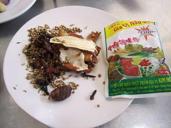 写真はフォーのスープを作るために用意したスパイスです。八角・陣皮・クローブなど多種のスパイスを用意し、