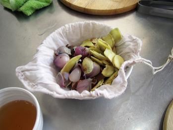 さらにエシャロットのような香味野菜などを袋に入れて・・・