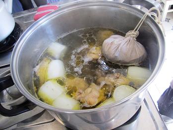 これを大根と一緒に煮込むのです。ちなみにこの茹でた大根はスープ完成後は捨ててしまうのですが、日本人の私としては何かもったいない気分になりました。きっとスープが染みてとても美味しいのでは?と思うのです。