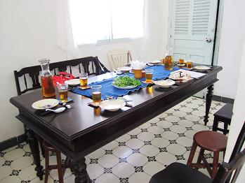 さてさて待望の料理教室のはじまりです。この料理教室は現地に滞在している駐在員の家族の方などもよく通われているとの事でした。確かにインテリアも立派ですしレッスン料も現地の物価を考えるととても高額なものです。