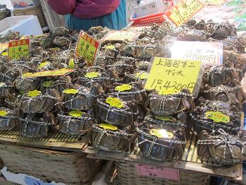 上海蟹もびっしり並んでいました。こういう場所には世界の市場共通の生き生きとした息づかいを感じます。