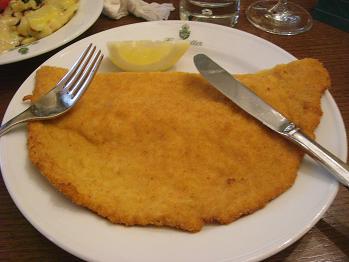 肉はよく叩かれているので薄いのですが私は半分しか食べれませんでした。ここは地元の人も通うそうで確かに今まで食べたどのウィーン風カツレツよりも美味しかったです。